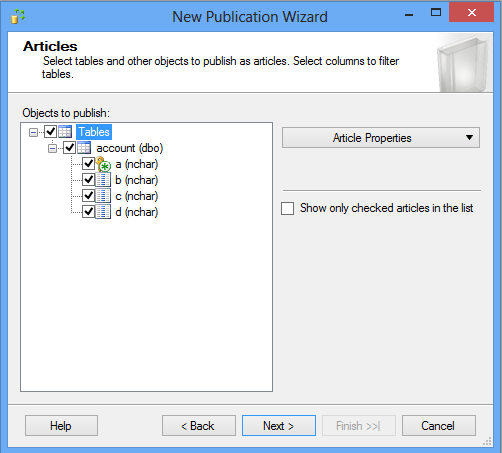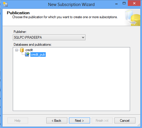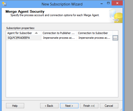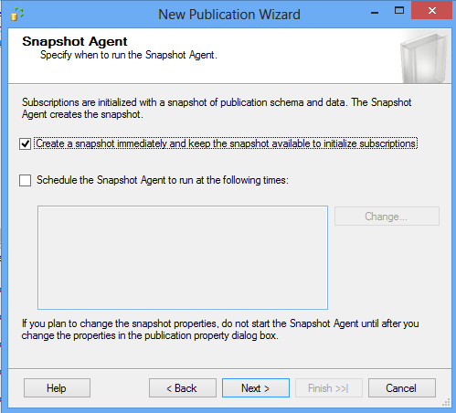 After selecting the account for snapshot agent and log reader agent,click Next.