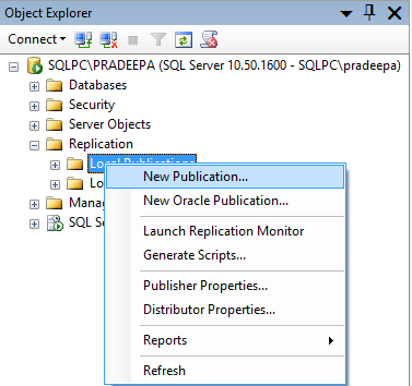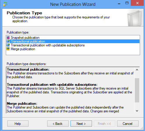 For all types of replication it is mandatory to create distribution for the publisher instance before configuring replication. For configuring distribution follow the steps in “How to configure distribution for replication”