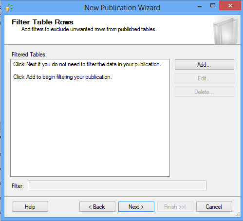 Add filters to exclude unwanted rows from published tables.Click Next.