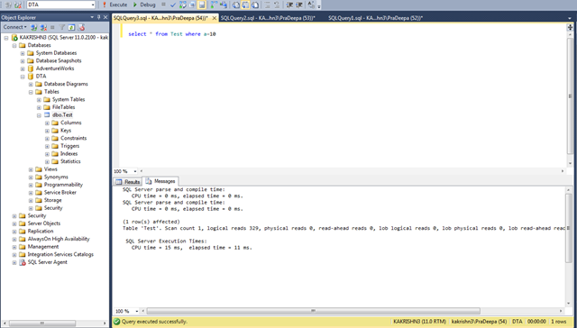 2. SQL Server parse and compile time when Set statistics time on is enabled.