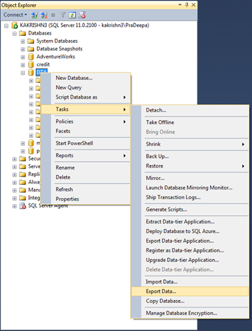 1.Create a new database or use existing database to create the database snapshots.